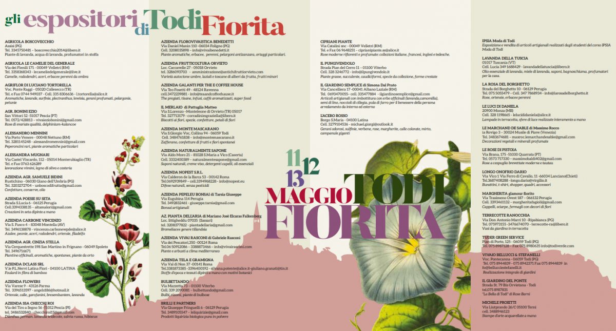 Una kermesse, questa, davvero ricca di eventi e manifestazioni, che saprà rendere Todi la città dei fiori in festa per un intero weekend.